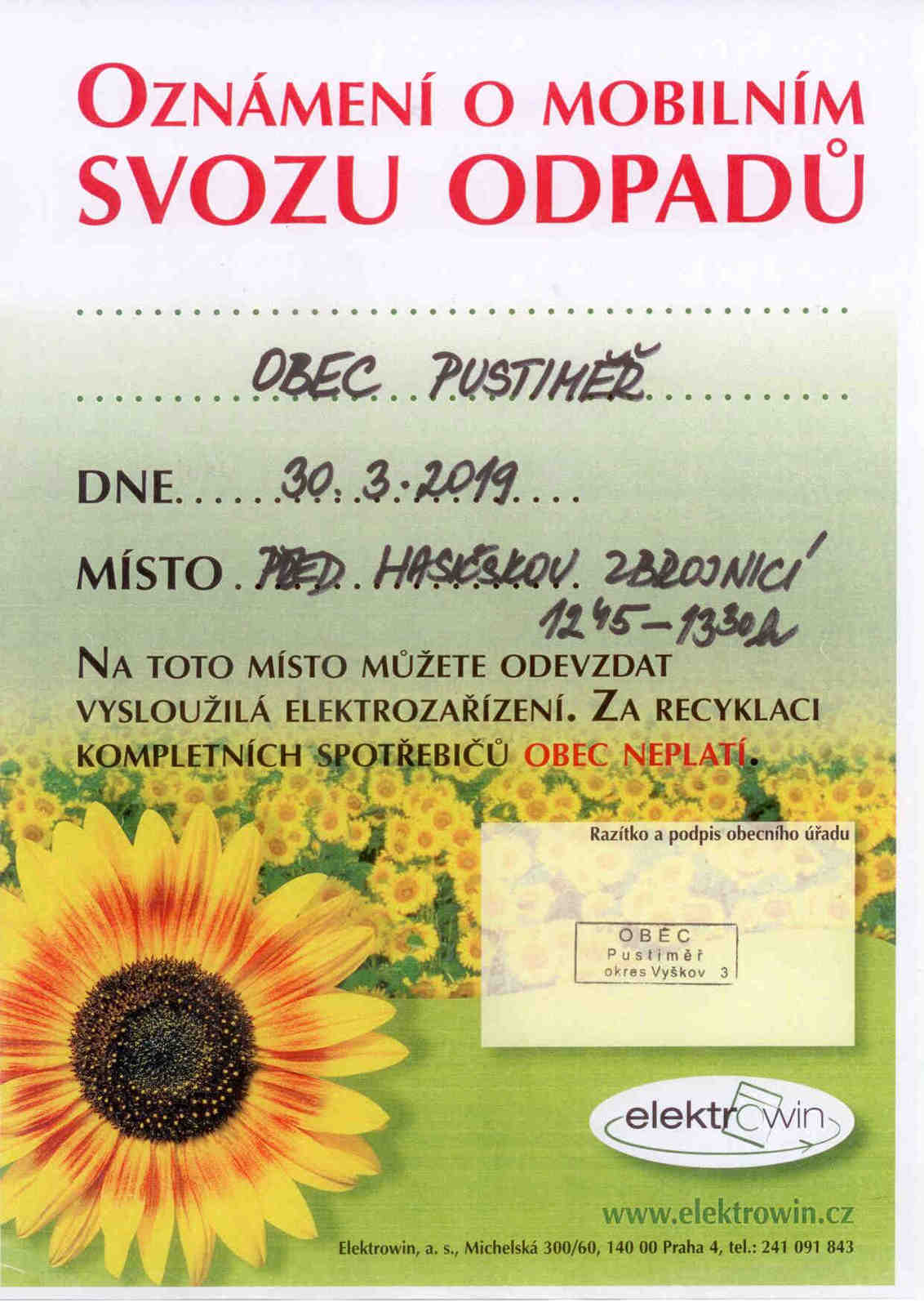 Úvod > Dění v obci > Aktuality > Sběr nebezpečného odpadu a elektrozařízení