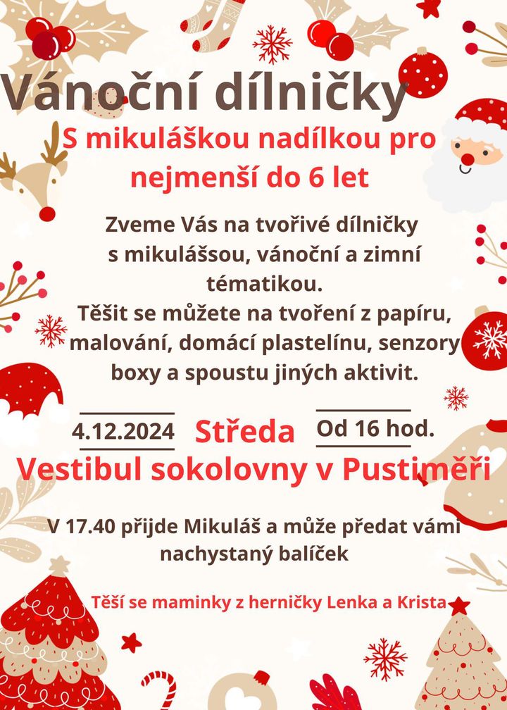 Úvod > Dění v obci > Aktuality > VÁNOČNÍ DÍLNIČKY S MIKULÁŠSKOU NADÍLKOU