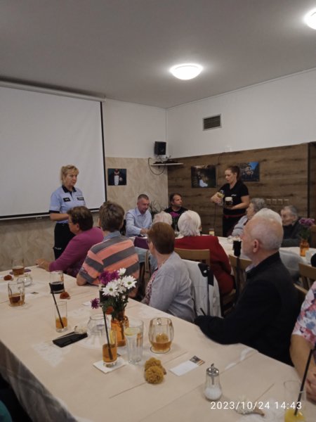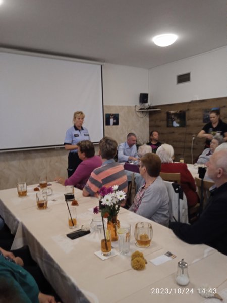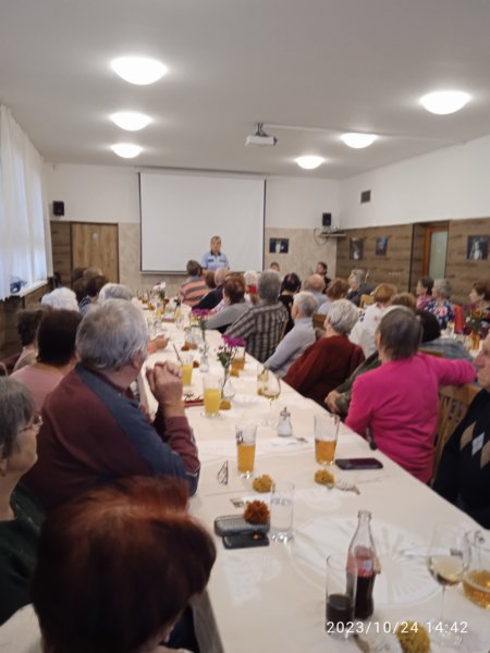 Na besedě s důchodci vystoupili žáci místní MŠ a ZUŠ, por. Mgr. Alice Musilová nás seznámila s riziky chování na internetu a starosta obce Mgr. Vlastimil Smékal s dalším rozvojem obce, nakonec jsem si připomněli akce v Pustiměři, které proběhly od minulého setkání.