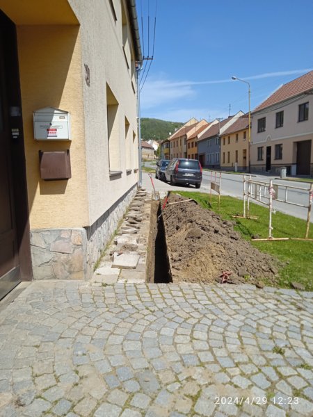 Úvod > Dění v obci > Fotogalerie > Další část elektrického vedení se ukládá pod zem