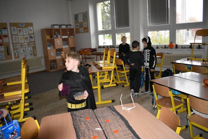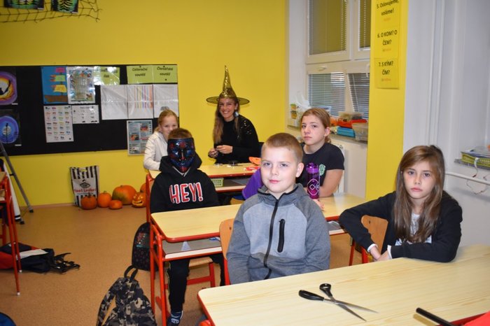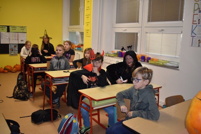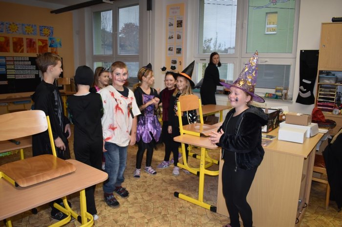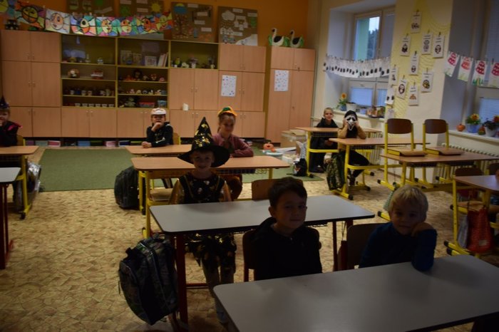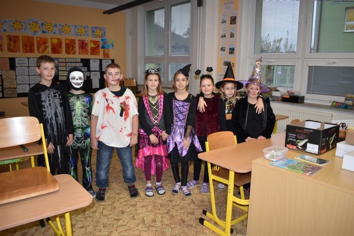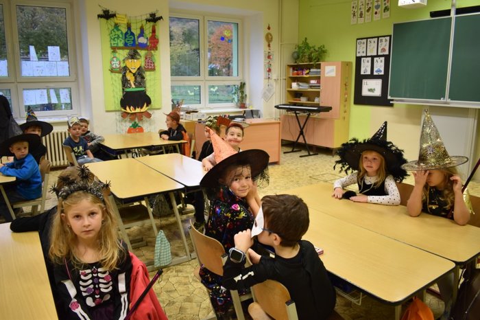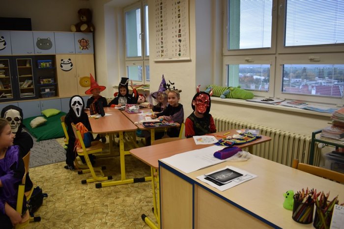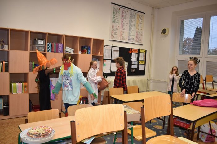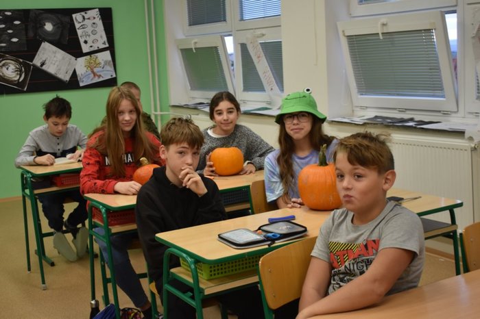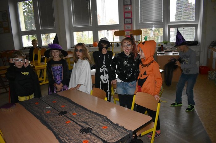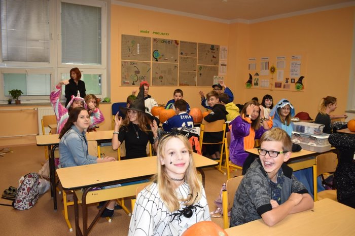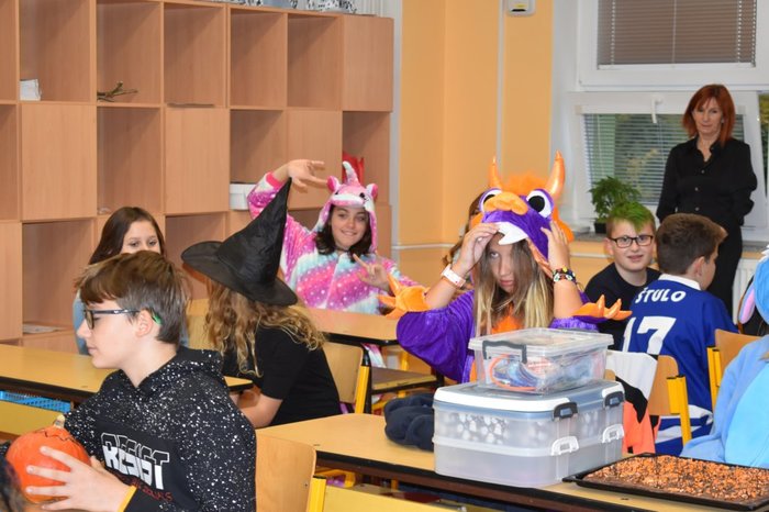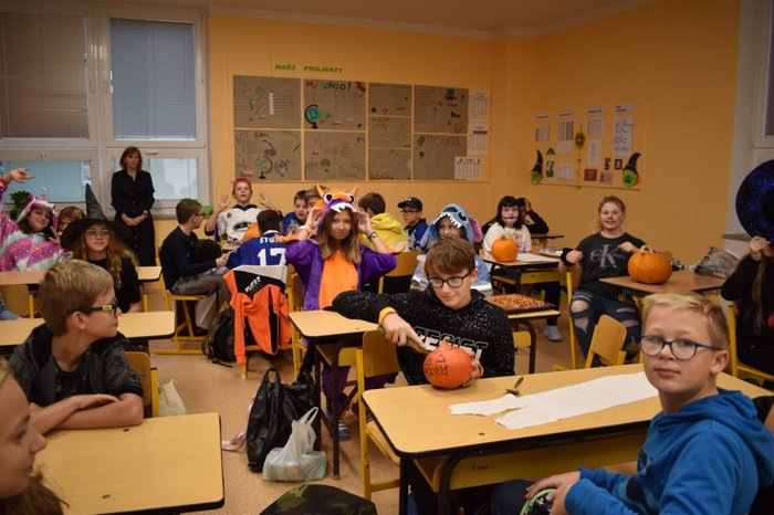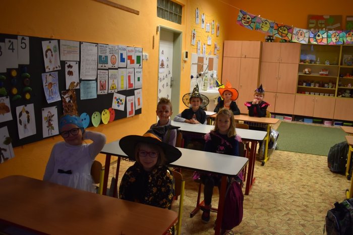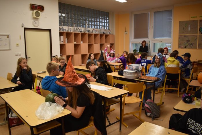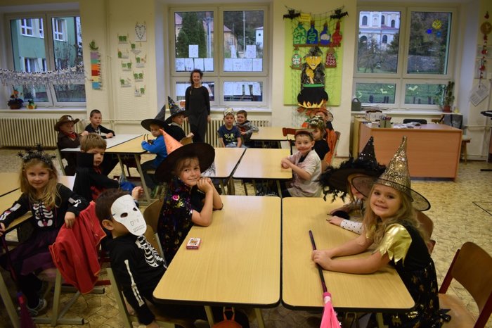 Škola byla plná kouzelných postav, které vyzdobily školu, vyřezaly překrásné dýně a průvodem kolem školy děkovaly za vše příznivé, co nám přinesl letošní rok, aby se začaly připravovat na nadcházející zimu.