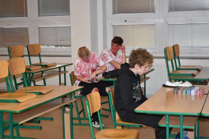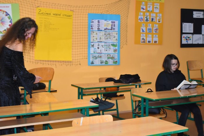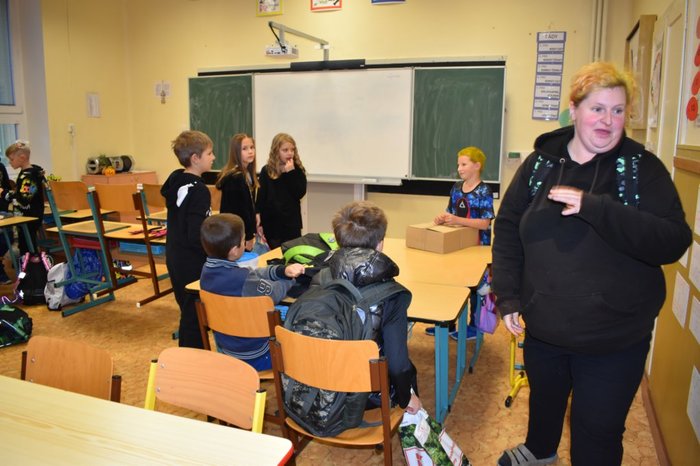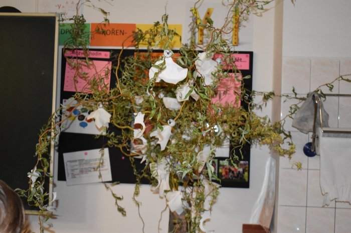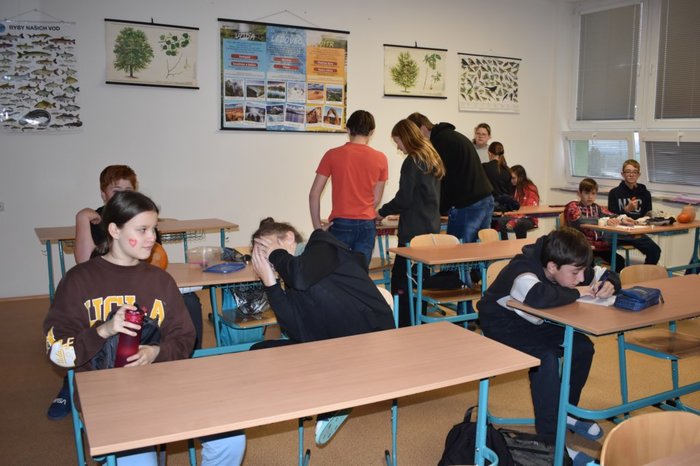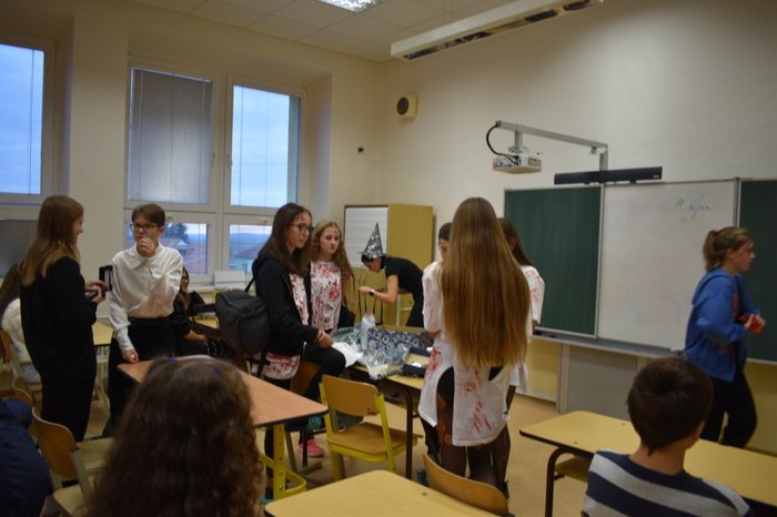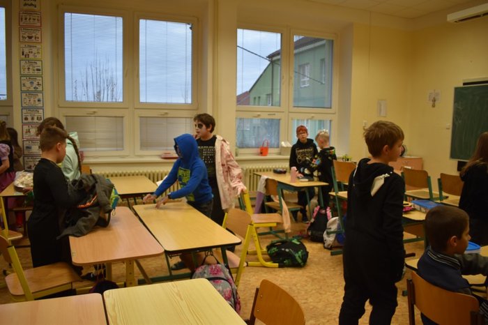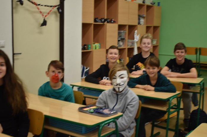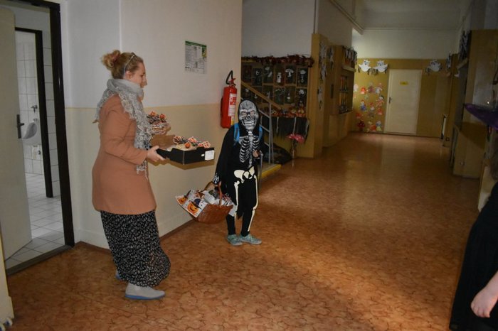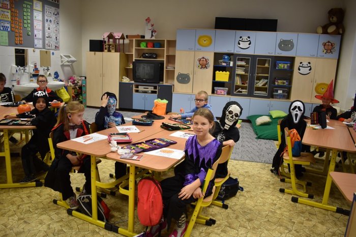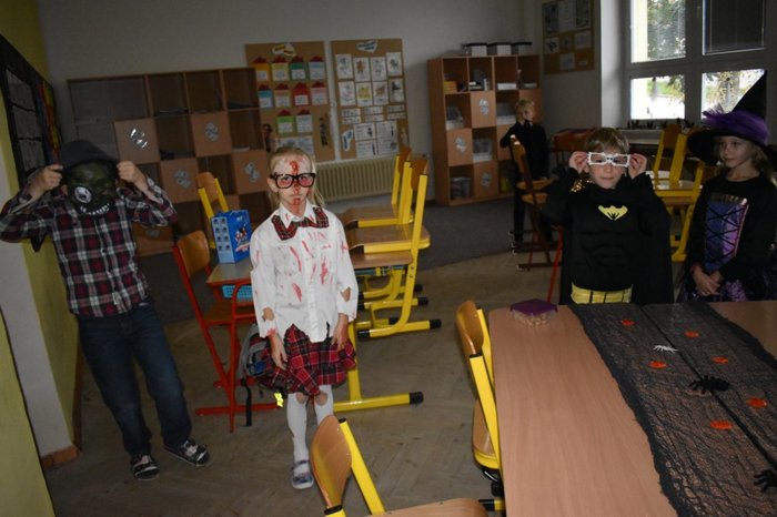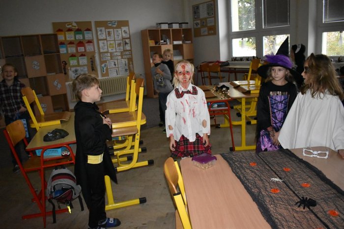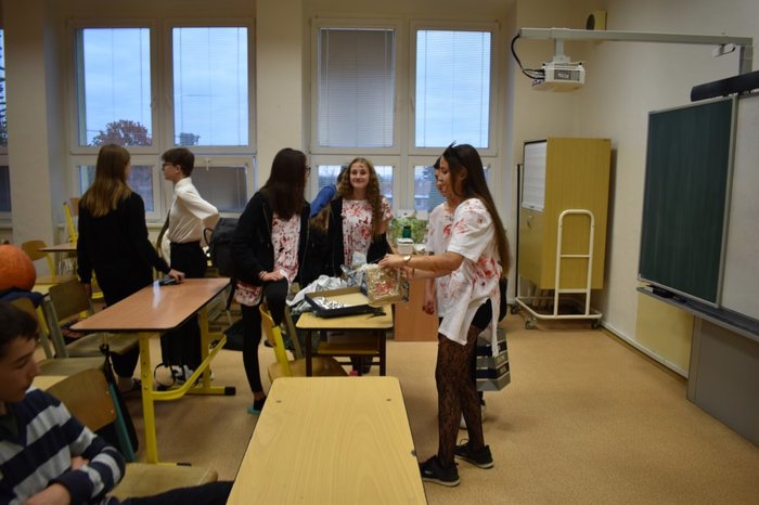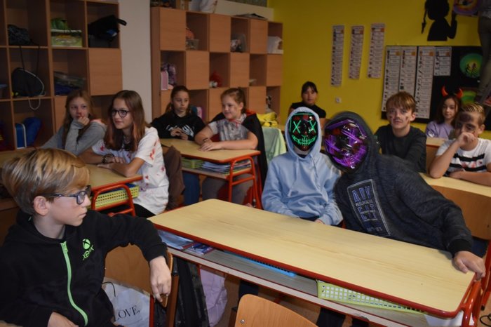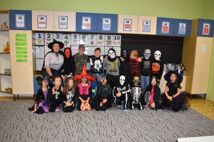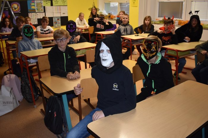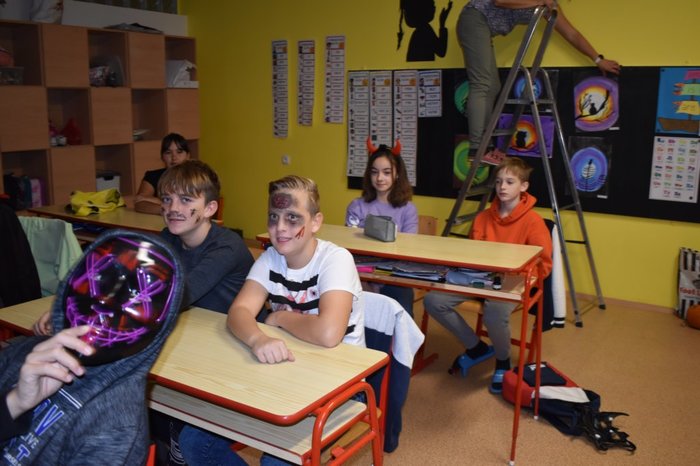 Škola byla plná kouzelných postav, které vyzdobily školu, vyřezaly překrásné dýně a průvodem kolem školy děkovaly za vše příznivé, co nám přinesl letošní rok, aby se začaly připravovat na nadcházející zimu.