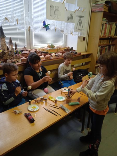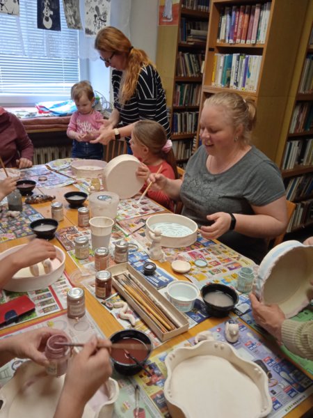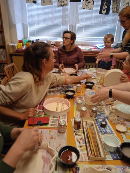 Úvod > Dění v obci > Fotogalerie > Glazování s paní Simonou Koutníčkovou 2022 - pítka pro ptáčky