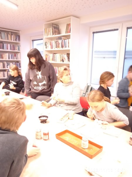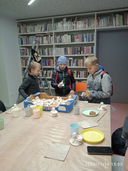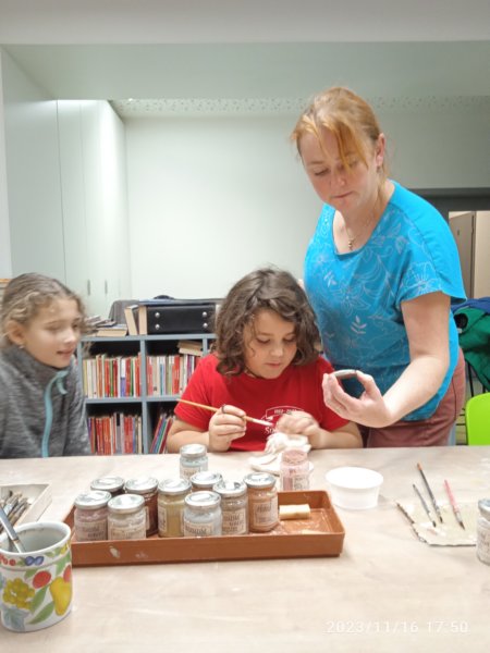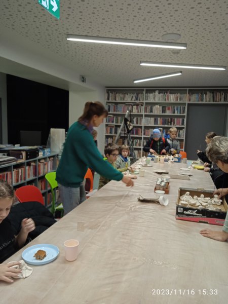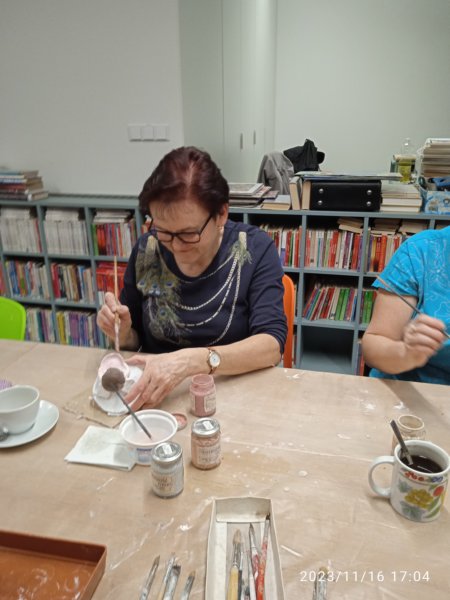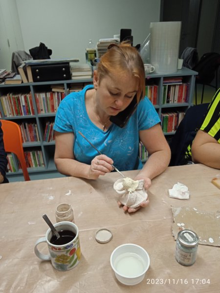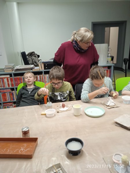 Úvod > Dění v obci > Fotogalerie > Glazování s paní Simonou Koutníčkovou v knihovně listopad 2023