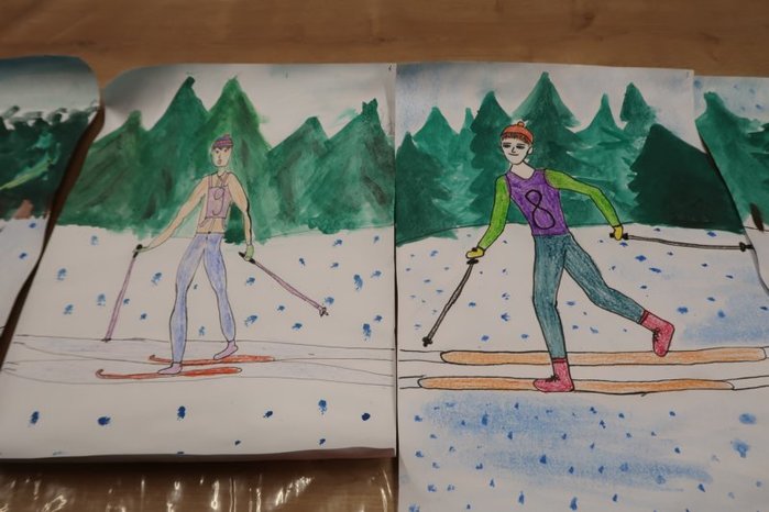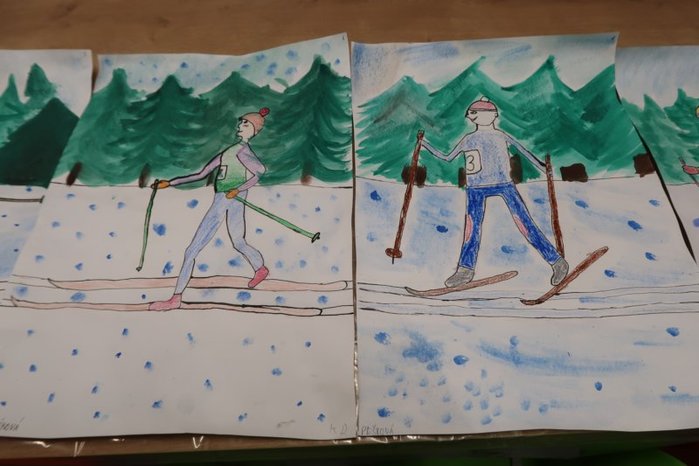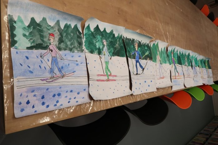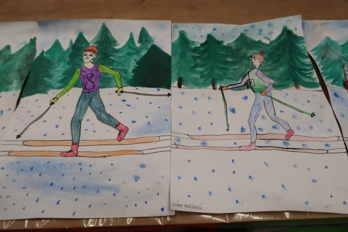Úvod > Dění v obci > Fotogalerie > I mladší žáci naší ZUŠ společně namalovali závodníky v lyžařské stopě