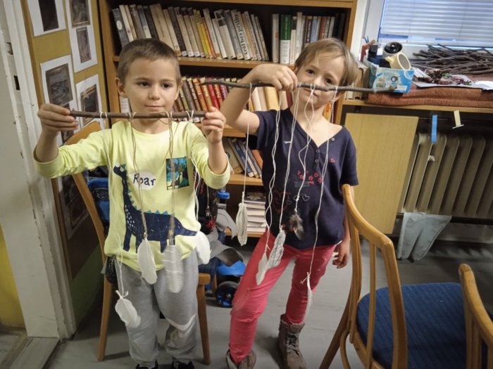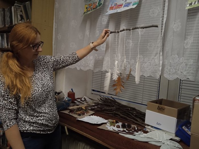 Úvod > Dění v obci > Fotogalerie > Indiánské závěsy z peří s Ing. Dagmar Jedličkovou