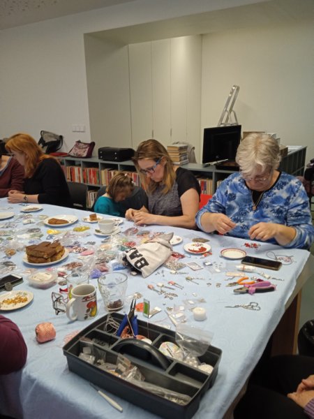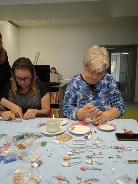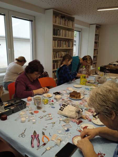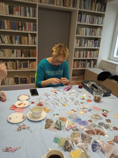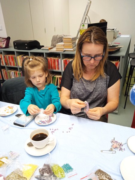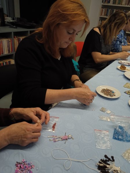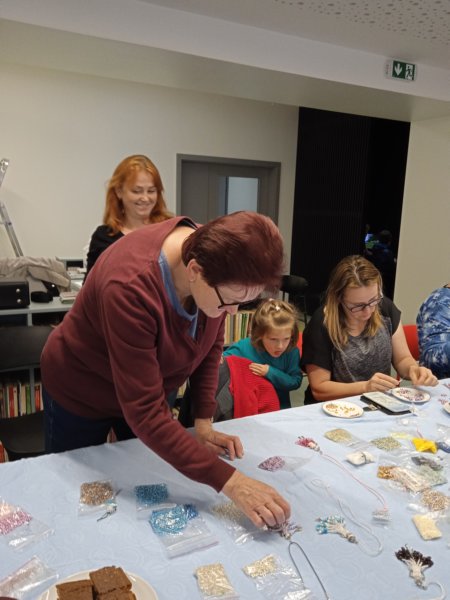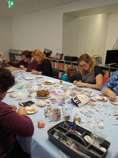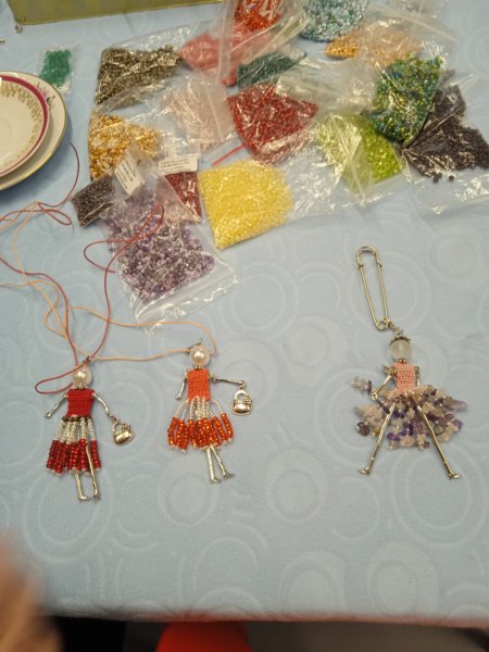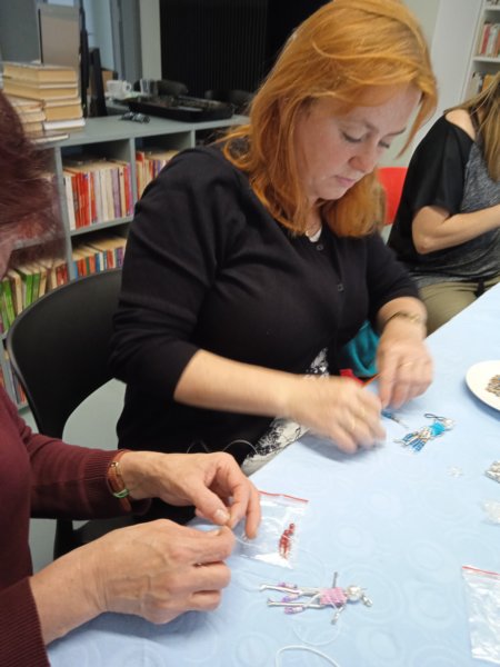 Společně jsme si vyrobili trendy panenky - vhodné jako náhrdelník, či ozdoba například kabelky. Zájemci, kteří se nemohli dostavit ve čtvrtek do knihovny pokračovali ve středu další týden u Elišky.