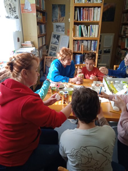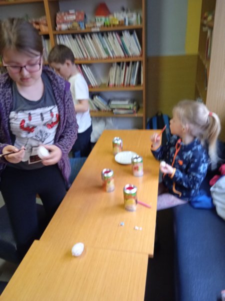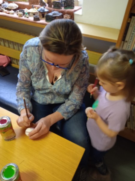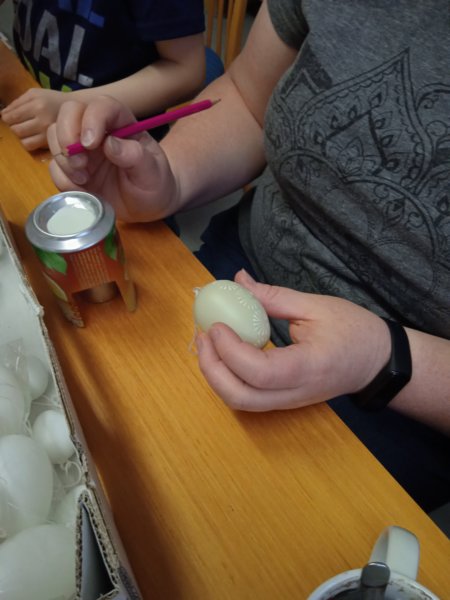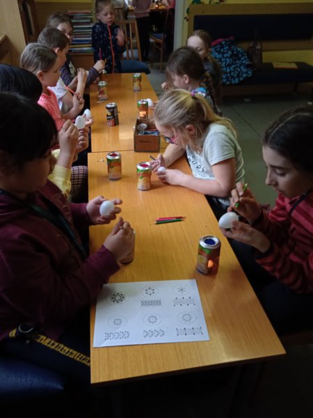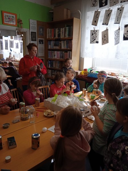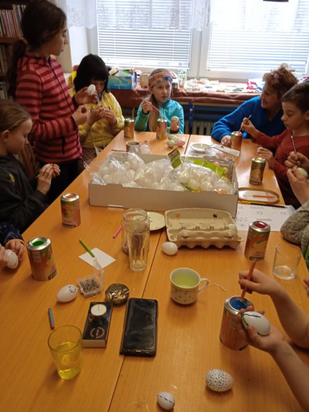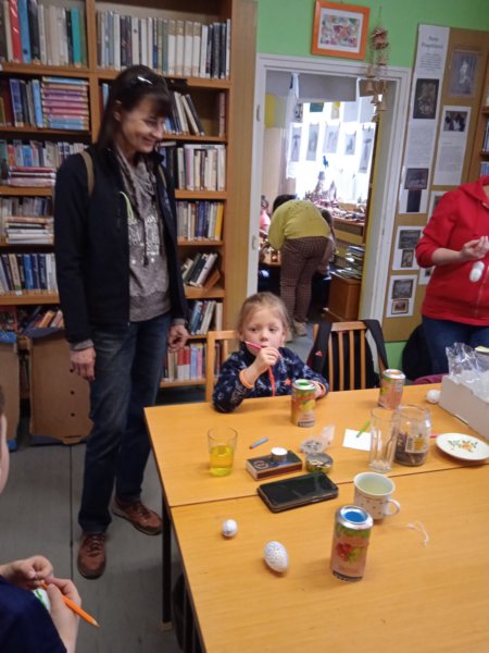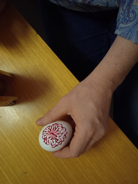 Úvod > Dění v obci > Fotogalerie > Kraslice malované voskem s Ing. Markétkou Poč