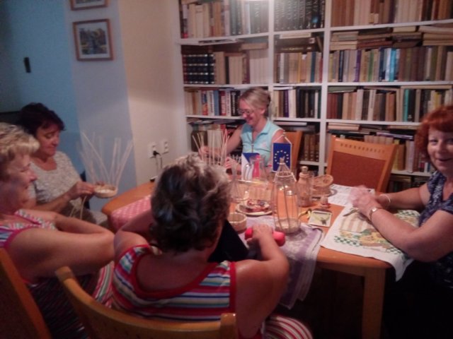 Další kurs pletení košíčků z pedigu proběhl mimo knihovnu ve spolupráci s Diogenem ve Vyškově. Vedla ho Věruška Kučerová. Učili jsme se uzavírat pletení košíku.
