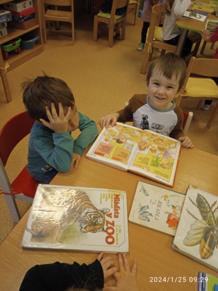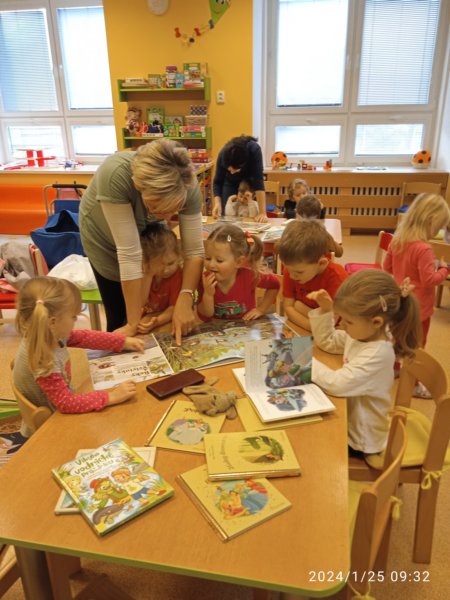 Úvod > Dění v obci > Fotogalerie > Návštěva s knihami ve 4. třídě naší MŠ 2024