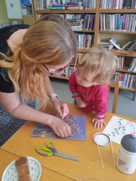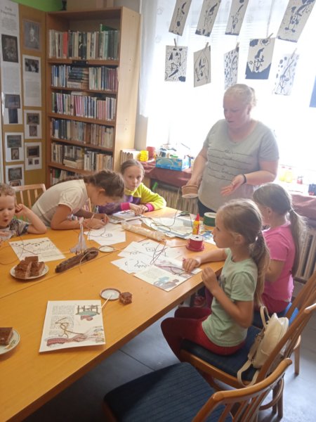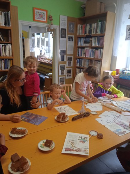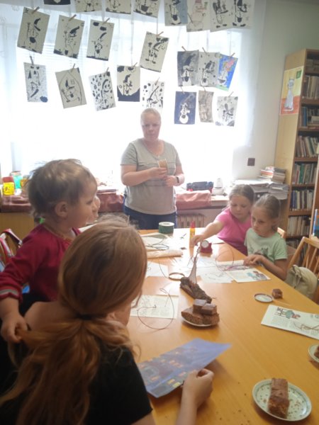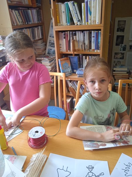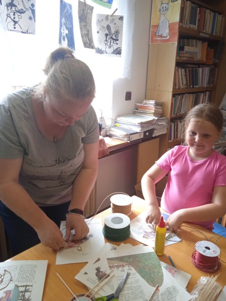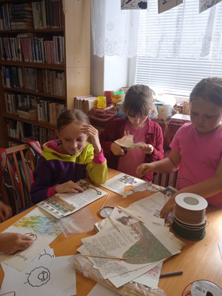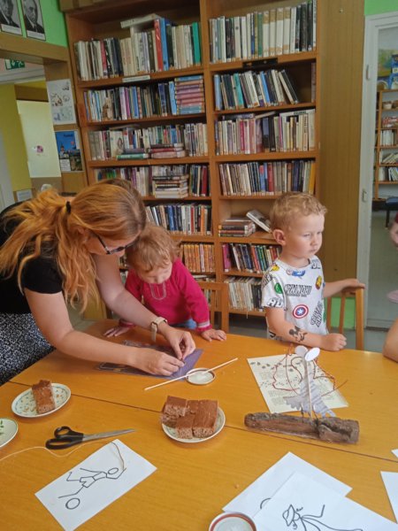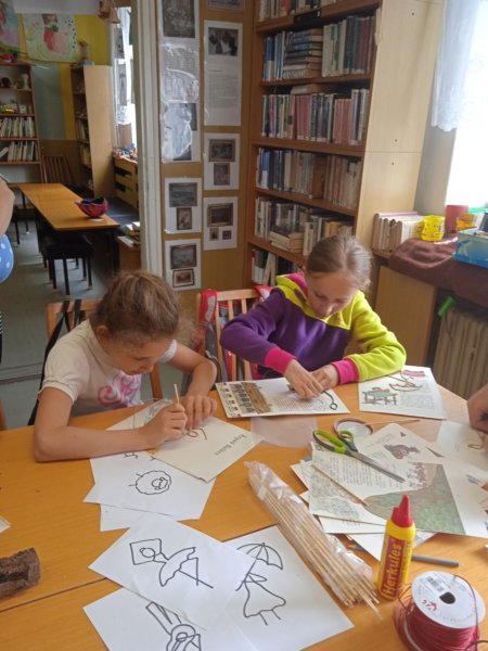 Úvod > Dění v obci > Fotogalerie > Postavičky na kůře jsme v knihovně vytvořili s Ing. Markétkou Poč