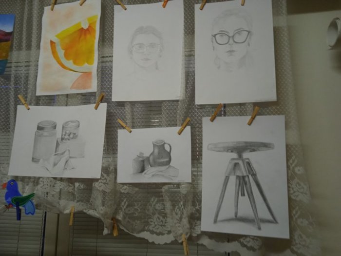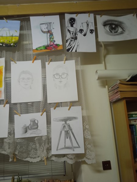 Úvod > Dění v obci > Fotogalerie > Práce absolventského ročníku žáků ZUŠ 2021/2022 - stínovaná kresba