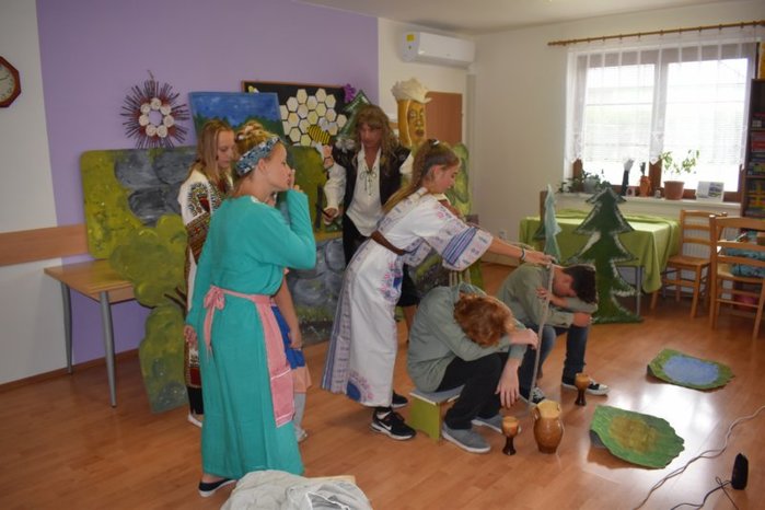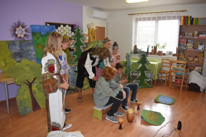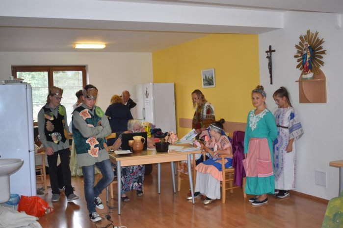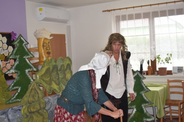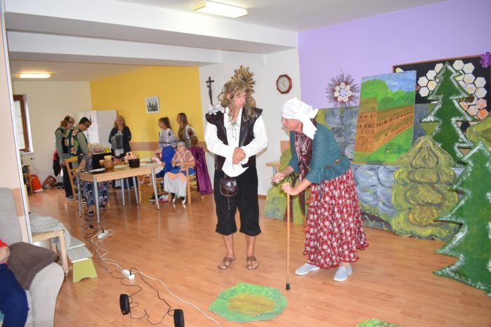 Těsně před omezením návštěv v sociálních zařízeních z důvodu rozšiřování Covidu - 19 se nám podařilo zahrát naše divadelní představení "Kuš babo, aneb, jak u nás obr ztratil hlavu", které jsme jim slíbili už na jaře, kdy nám ho právě tato pandemie odložila.