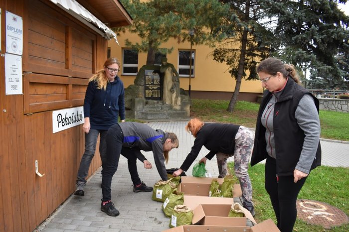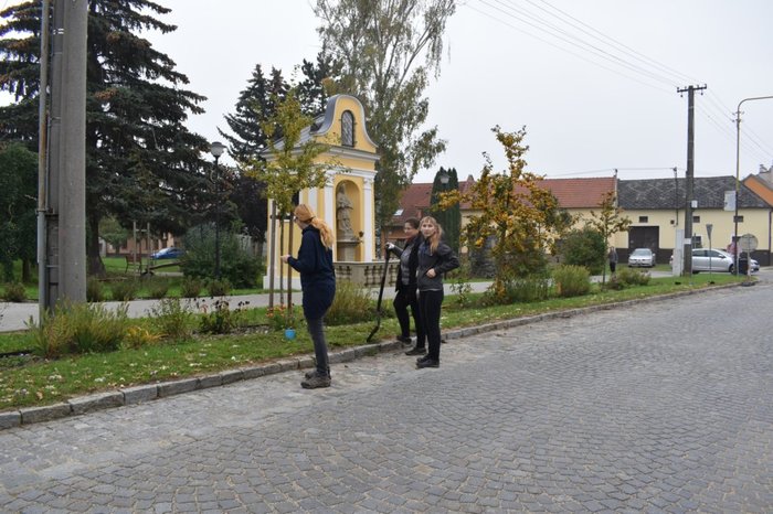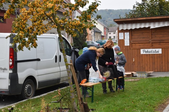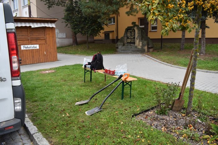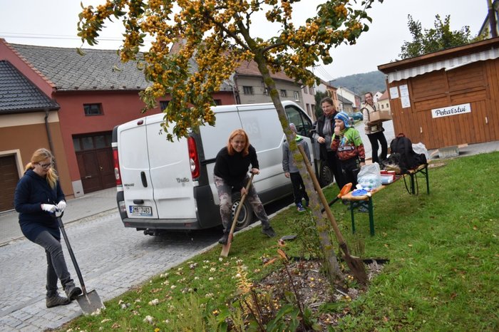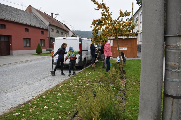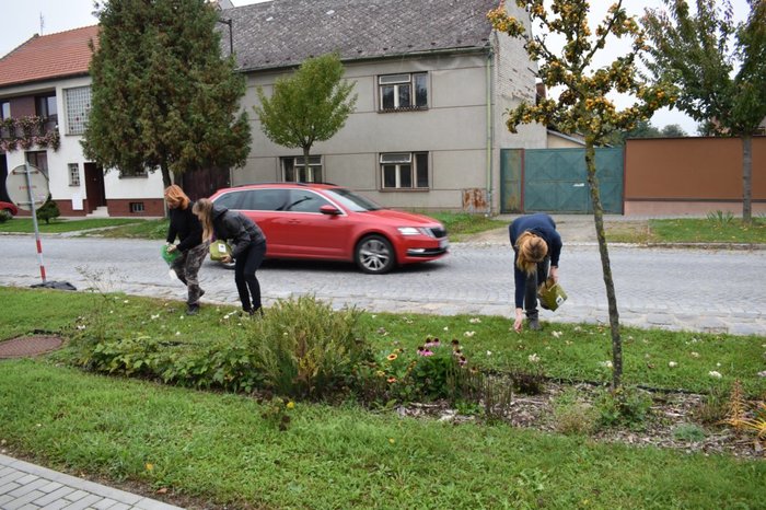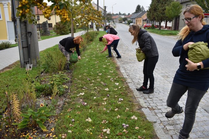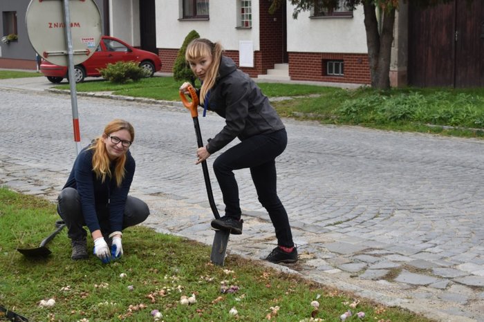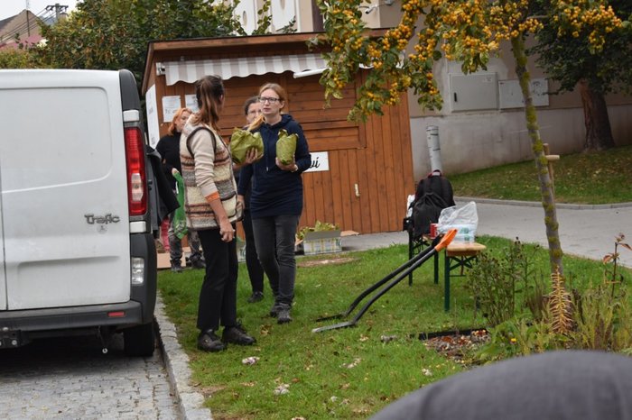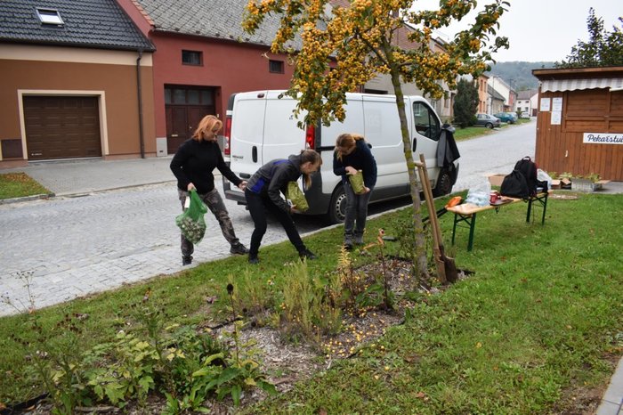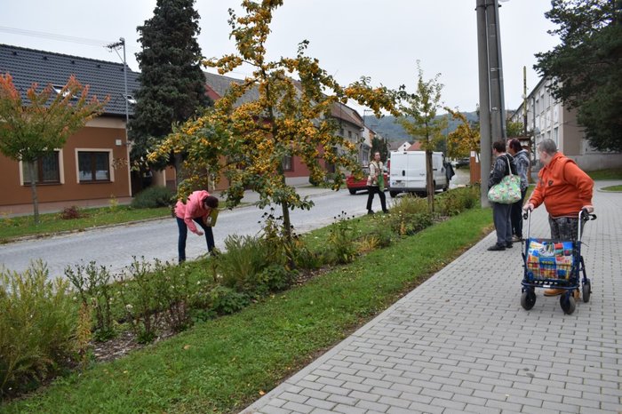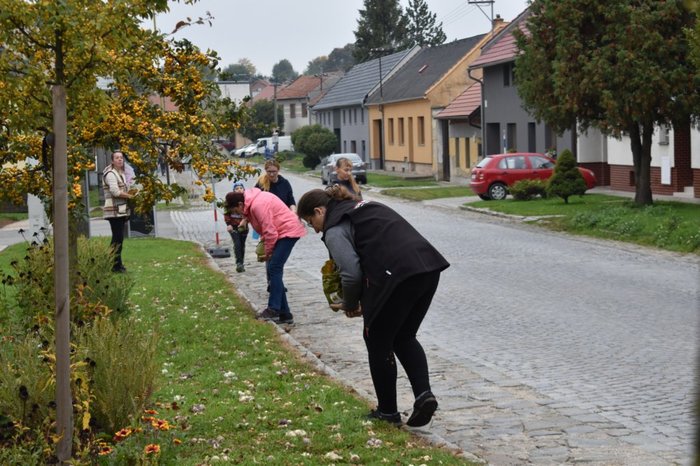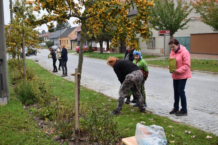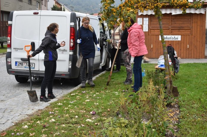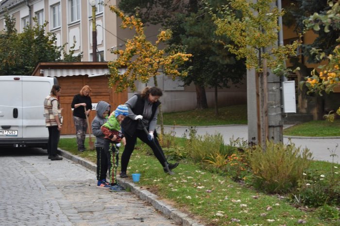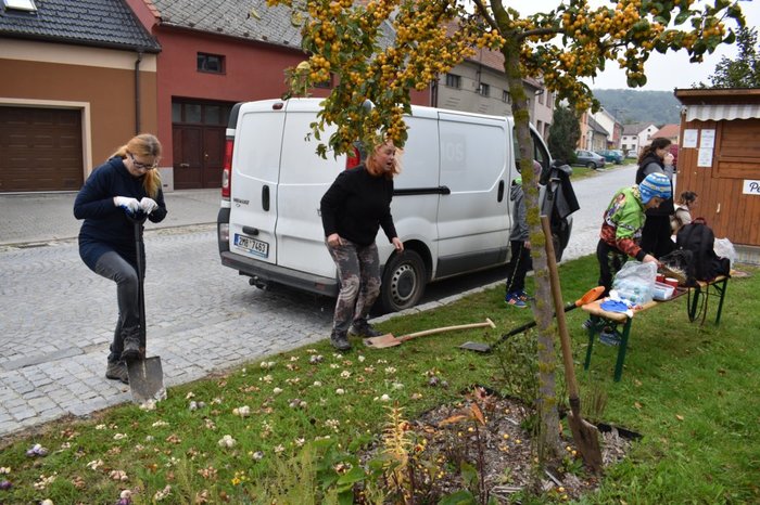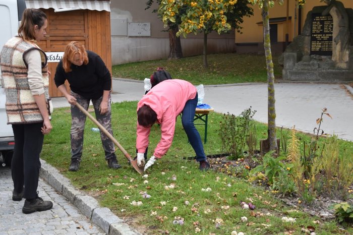 Úvod > Dění v obci > Fotogalerie > Sázení jarního záhonku před parkem u Adélky s kulturní komisí