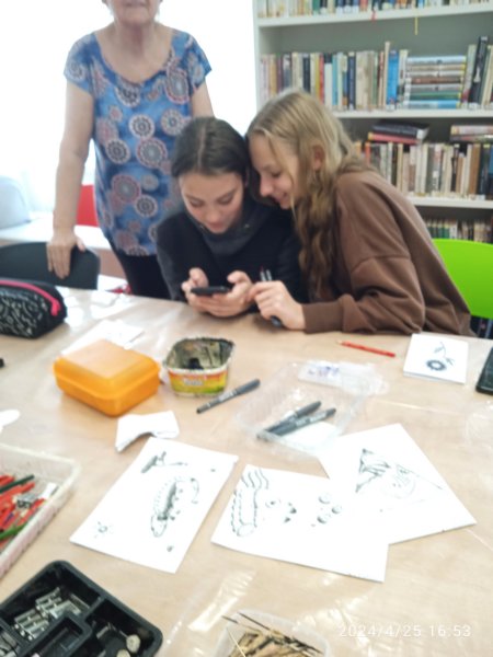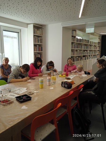Úvod > Dění v obci > Fotogalerie > Tečkování s žáky ZUŠ v knihovně 2024