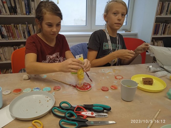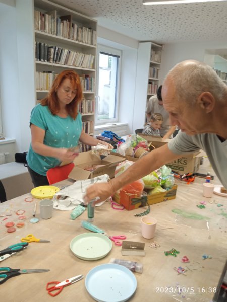 Úvod > Dění v obci > Fotogalerie > Tvoření v knihovně s Dagmar Jedličkovou - náhdrdelníky 2023