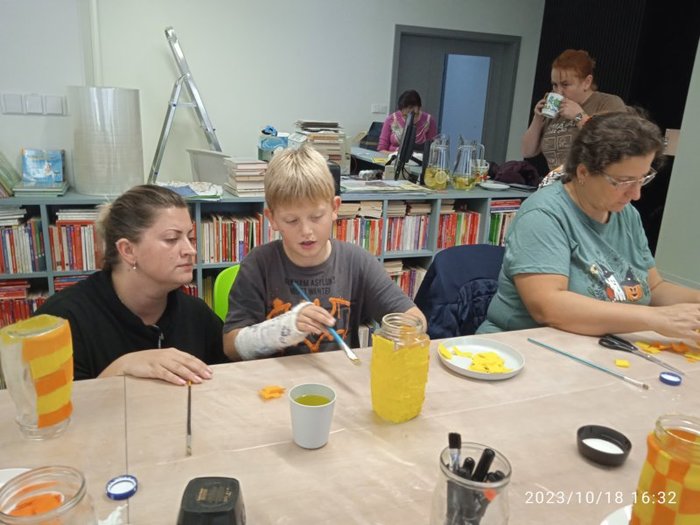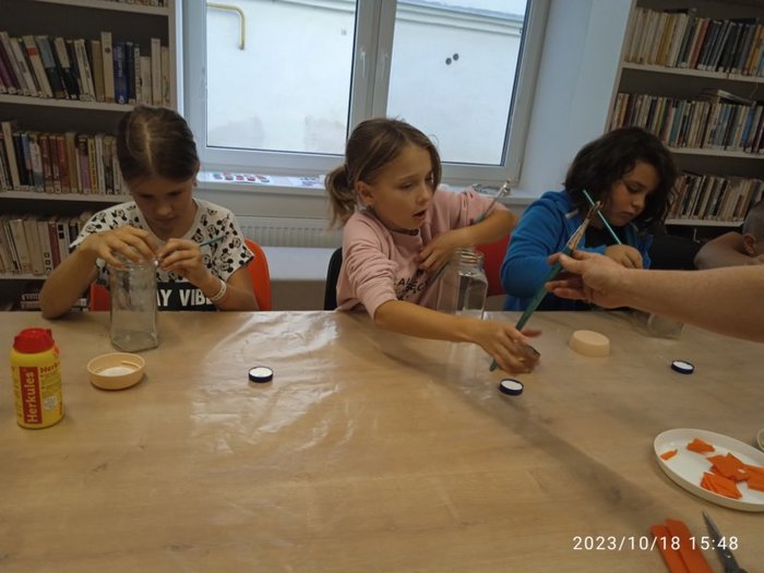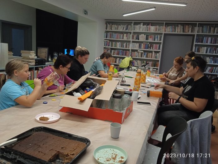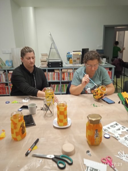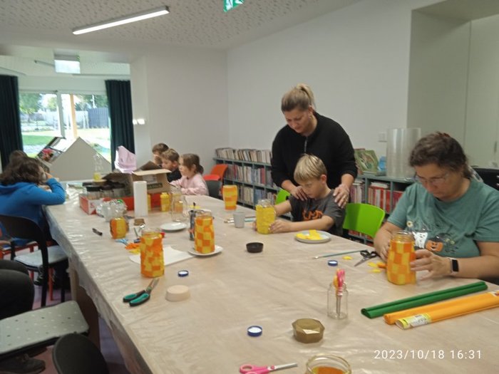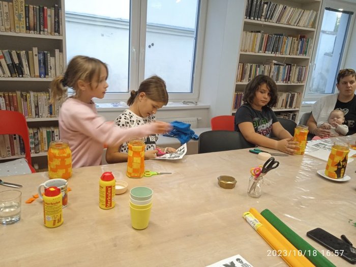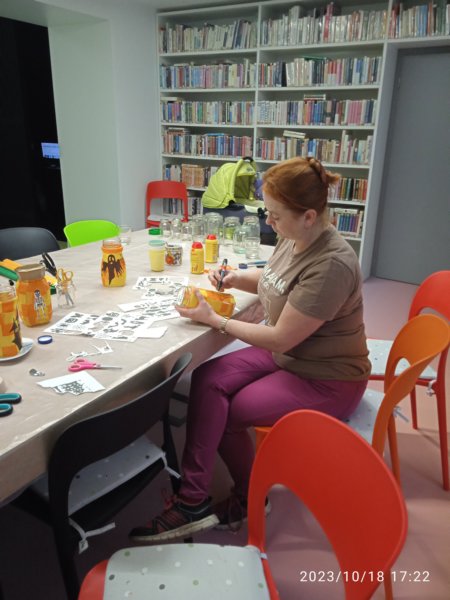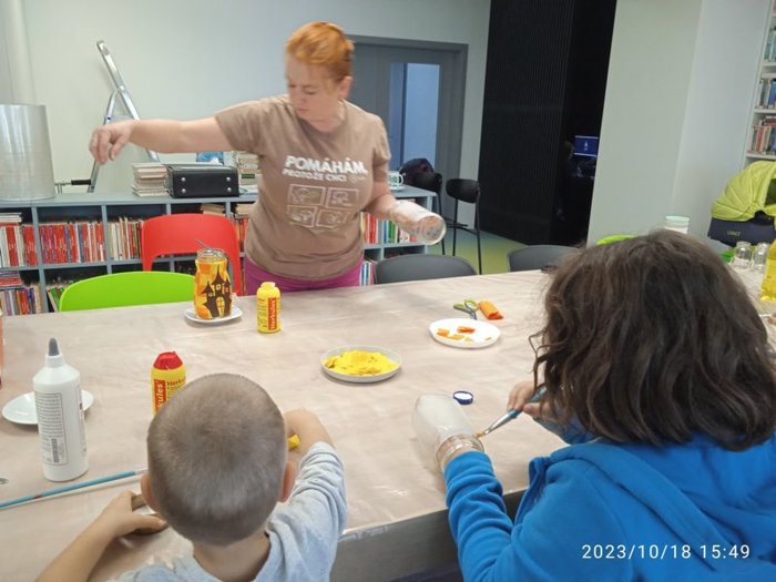 Úvod > Dění v obci > Fotogalerie > Tvoření v knihovně se Zuzankou Śtroblíkovou - Halloweenské lampičky 2023