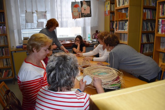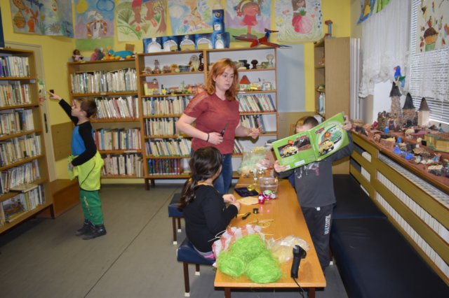 V knihovně jsme tvořili s paní Věruškou Kučerovou velikonoční slepičky z pedigu a zdobená závěsná vajíčka.