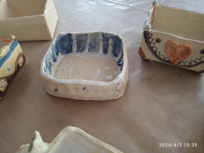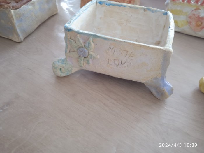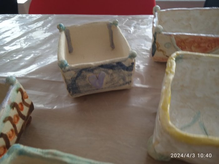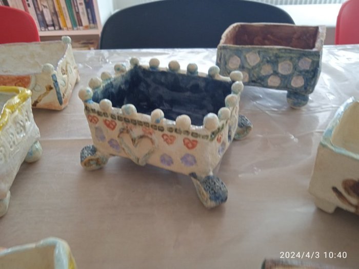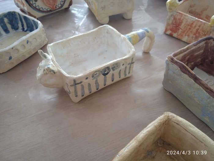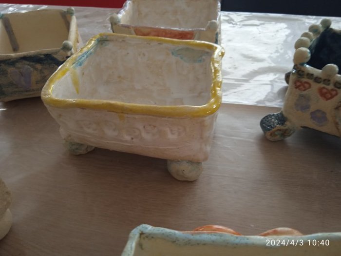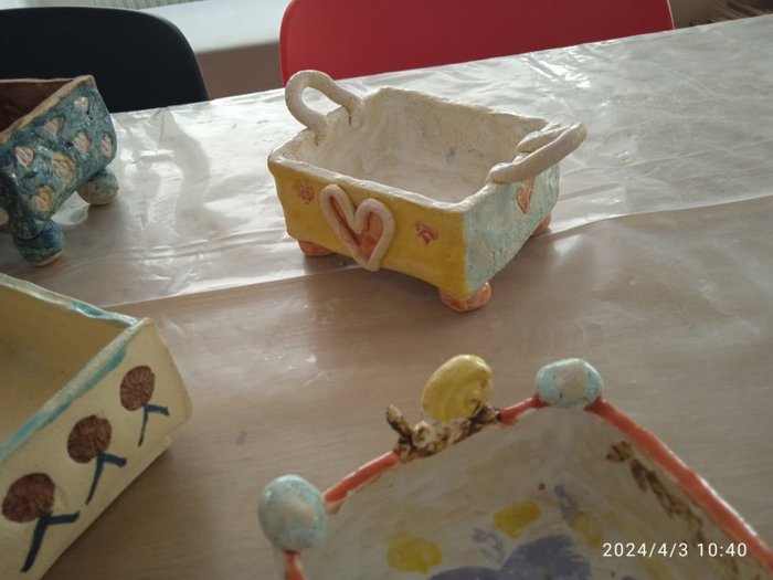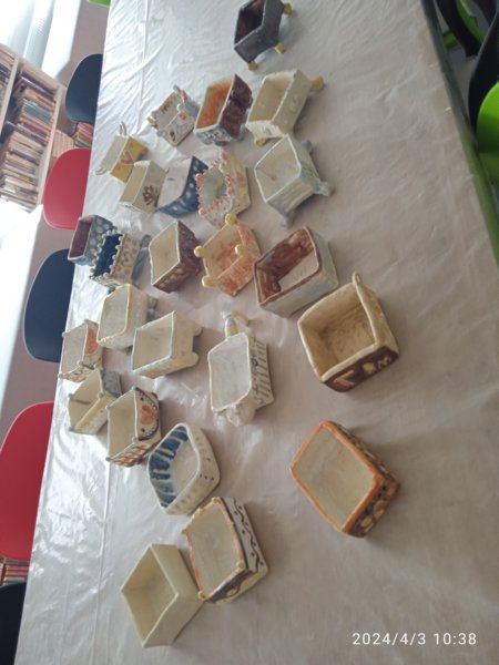 Úvod > Dění v obci > Fotogalerie > Výstavka keramických truhlíčků na cibulky vyrobených s paní Simonou Koutníčkovou 2024
