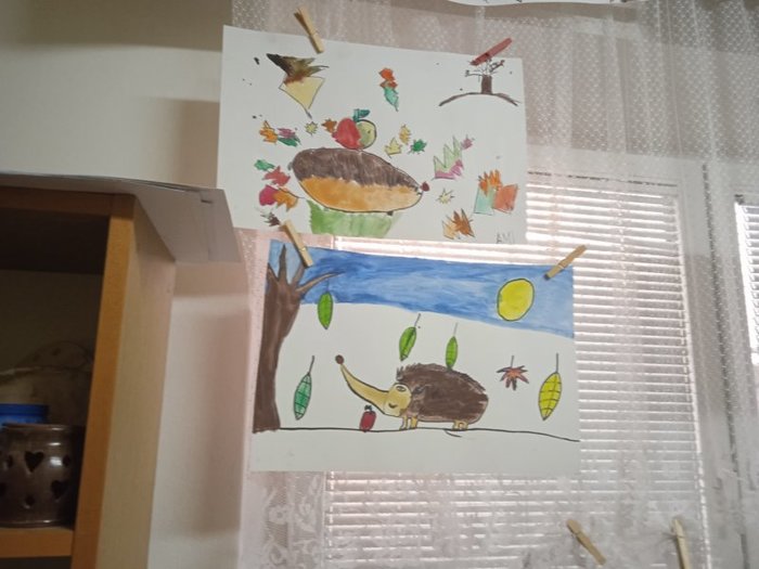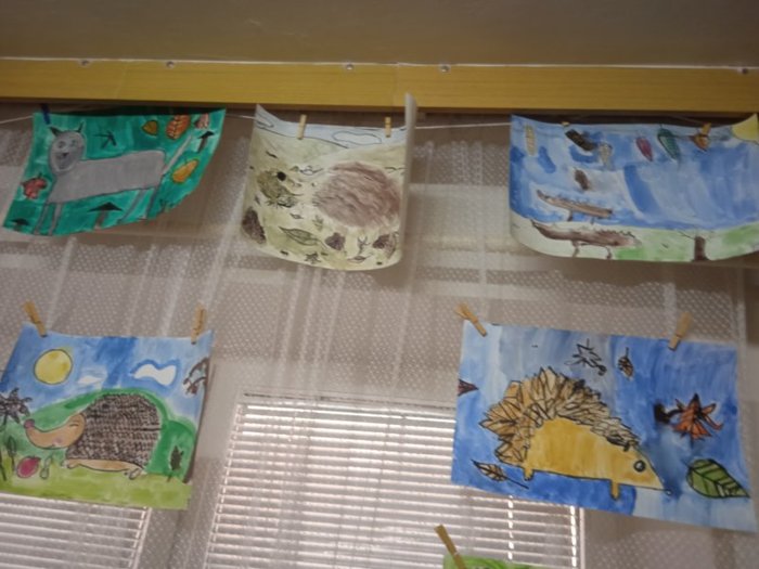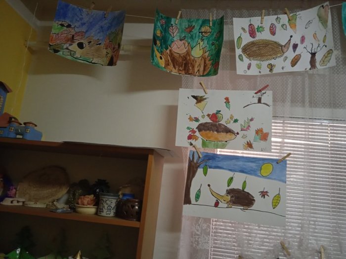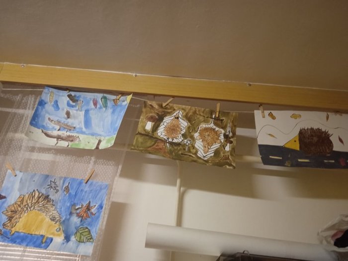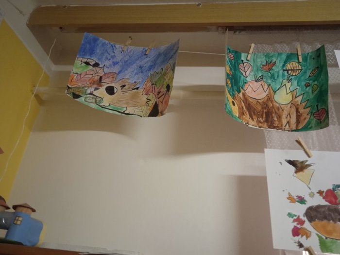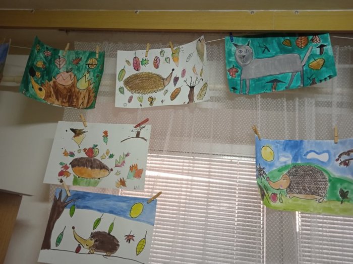 Úvod > Dění v obci > Fotogalerie > Výstavka prací žáků ZUŠ na téma "Ježci na podzim"