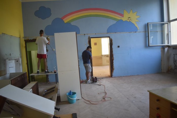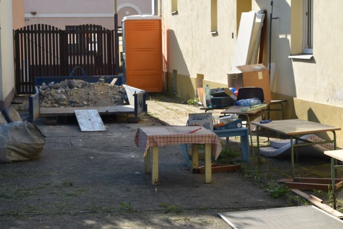 Úvod > Dění v obci > Fotogalerie > Začaly opravy na bývalé mlékárně a dolní školce - červen 2021