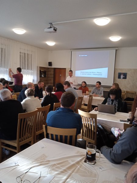 Úvod > Dění v obci > Fotogalerie > Zasedání Zastupitelstva obce Pustiměř - představení prací na nové trati vlaku v našem katastru